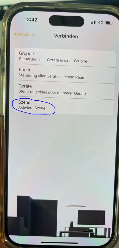 By configurating the switch, and choosing "scenes" the next screen has an optical bug, the scene can be chosen but to click on "weiter" is not possible since the button is to high below the battery symbol of the phone.